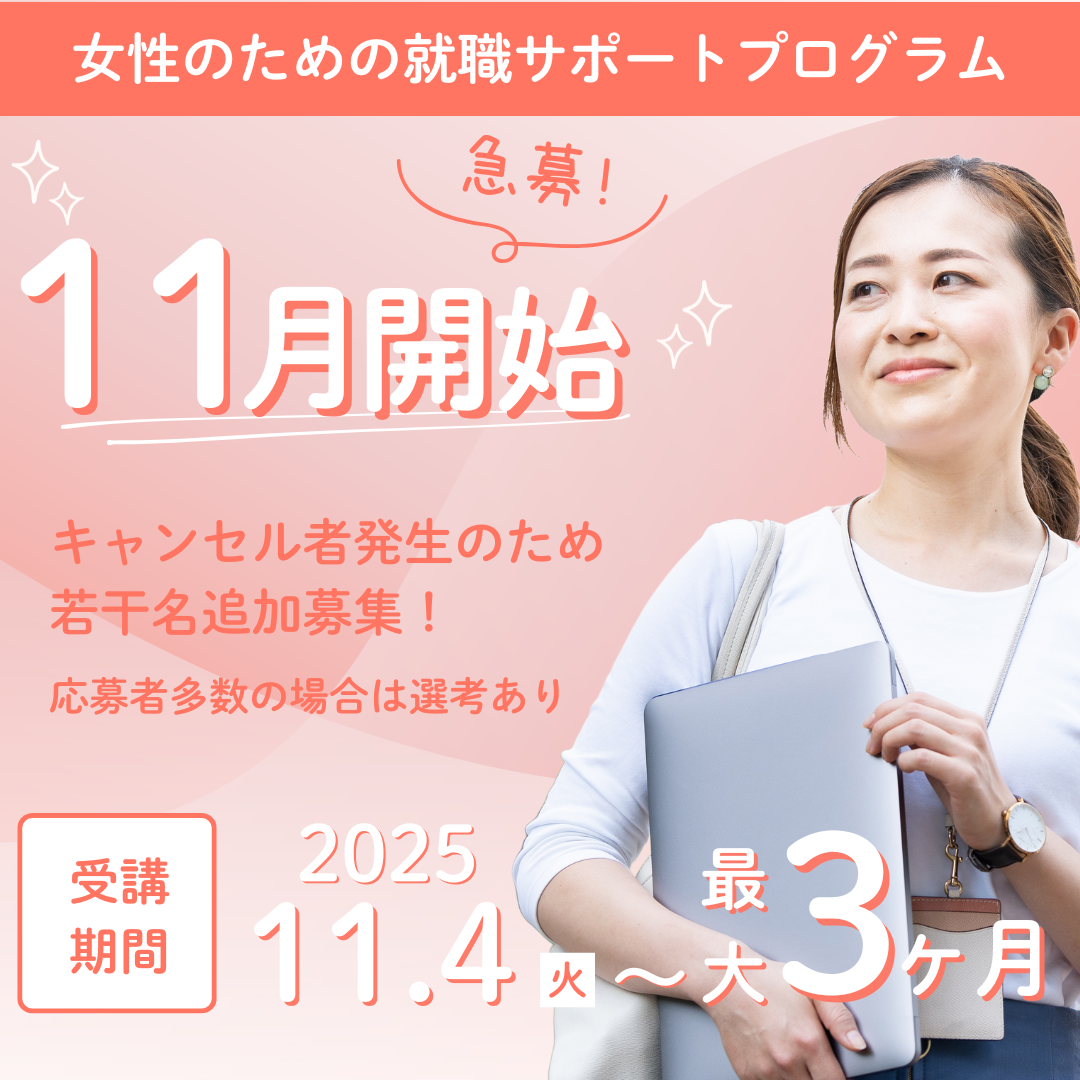 好評いただいております就職サポートプログラムは、キャンセル者発生のため、第6期生として若干名の追加募集を決定いたしました。